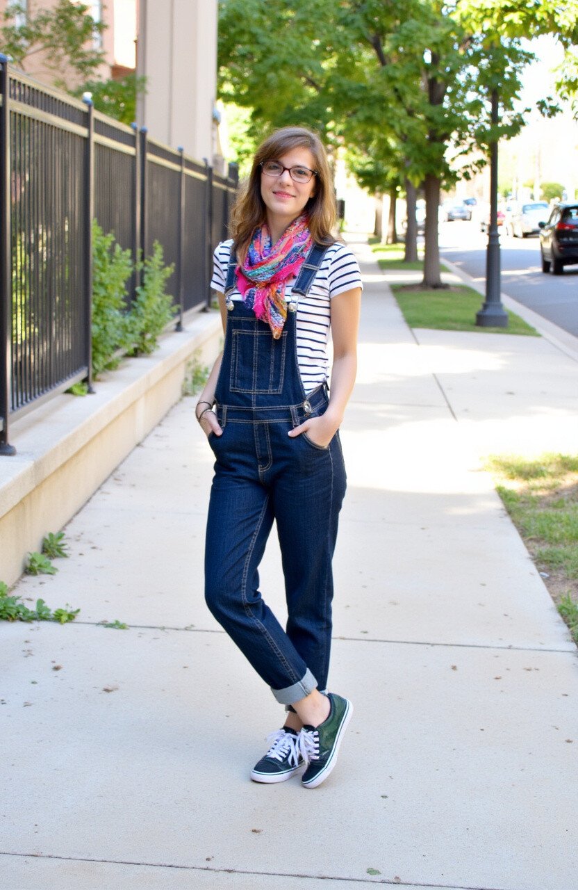 Look for overalls on sale or check second-hand shops for great deals. Add a colorful scarf or funky sneakers to complete the outfit.