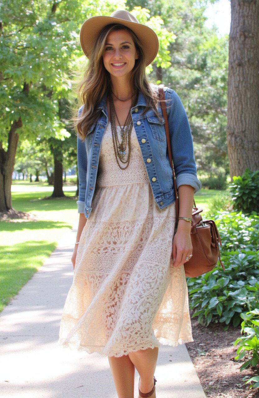 Channel your inner free spirit with a bohemian-inspired outfit. Think flowy skirts or dresses paired with a denim jacket.
