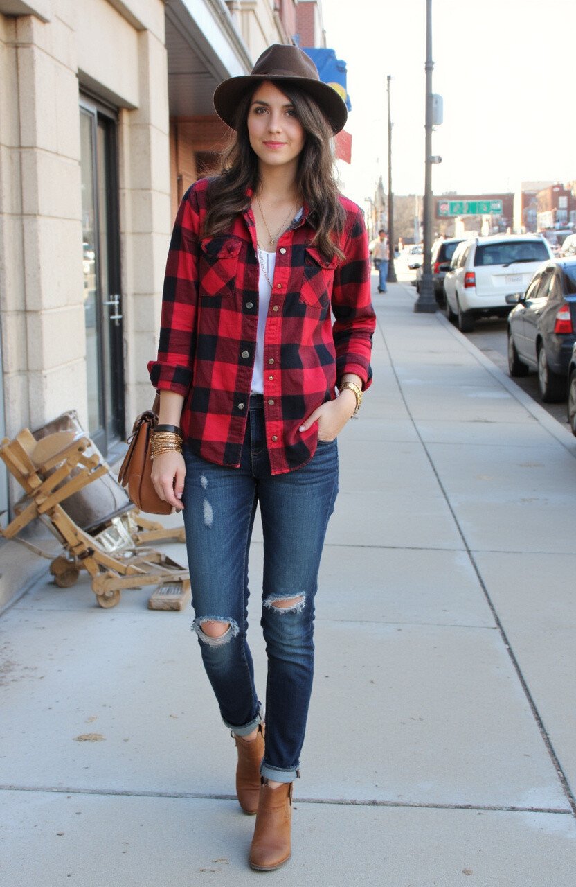 Pair with ankle boots or sneakers for a complete look. A wide-brim hat or a beanie can add a touch of personality. Opt for flannel shirts in bold colors or plaid prints.