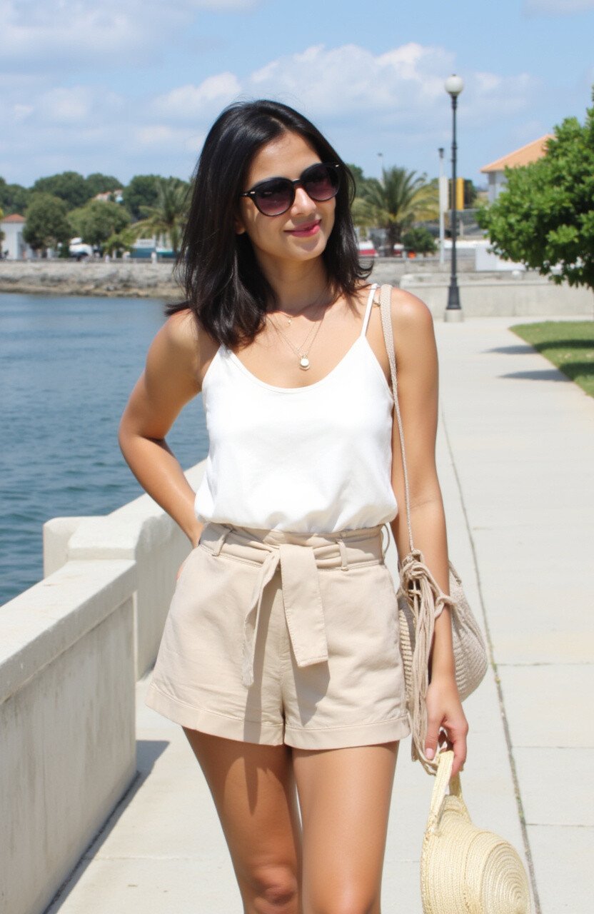 The camisole with paperbag shorts is perfect for a warm day. It’s light, airy, and effortlessly stylish. The camisole provides a simple base, while the shorts add a trendy silhouette.