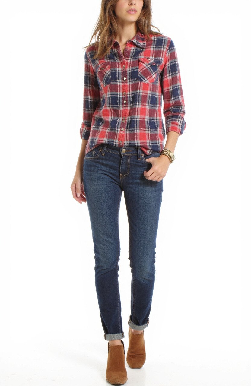 Roll up the sleeves or tuck in the shirt for a different look. Plaid shirts and skinny jeans are available in countless styles and colors, making it easy to find a pair that suits your taste. They’re also budget-friendly and accessible.