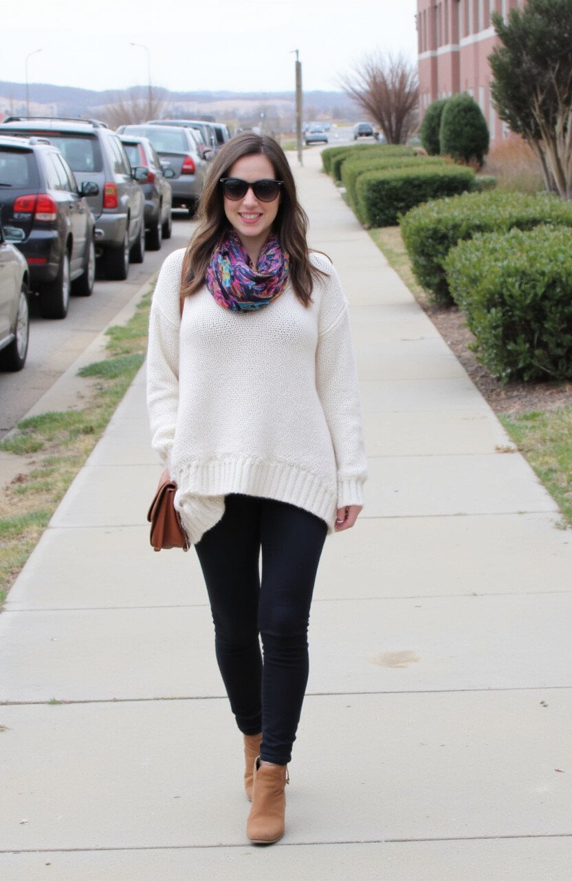 For those cooler days, a cozy knit sweater paired with leggings is the way to go. This outfit feels like a warm hug, keeping you snug while looking chic. Choose a sweater in a neutral shade for a sophisticated vibe.