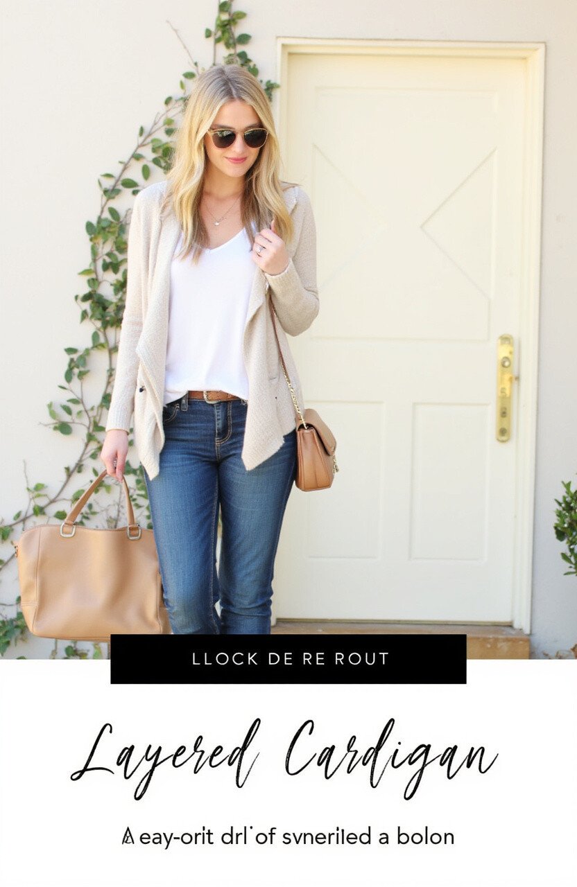 Layering is an art, and a cardigan over jeans is a masterpiece. This outfit is perfect for transitional weather when you need a little extra warmth. Choose a cardigan in a soft, neutral color for a chic look.