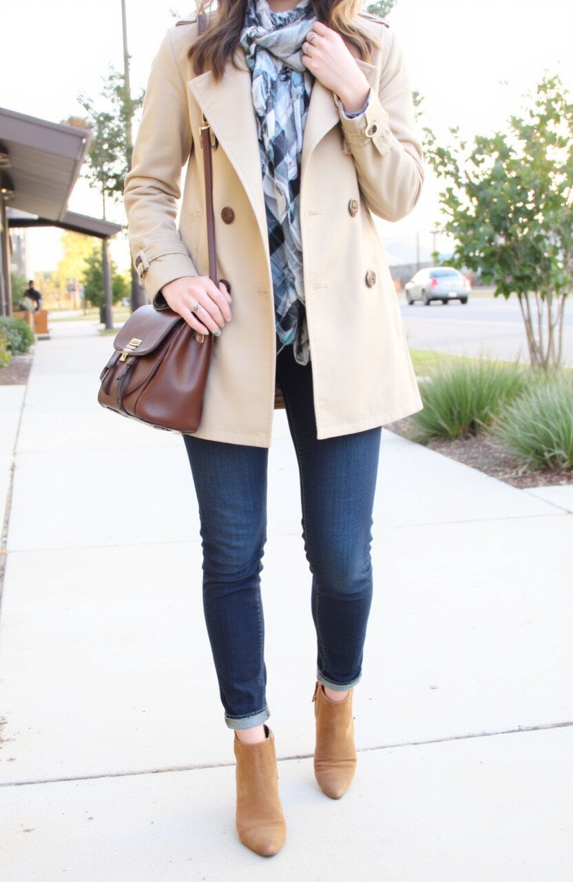 There’s nothing quite like a classic trench coat to elevate any outfit instantly. Pair it with skinny jeans and ankle boots for a timeless look that’s both chic and functional.