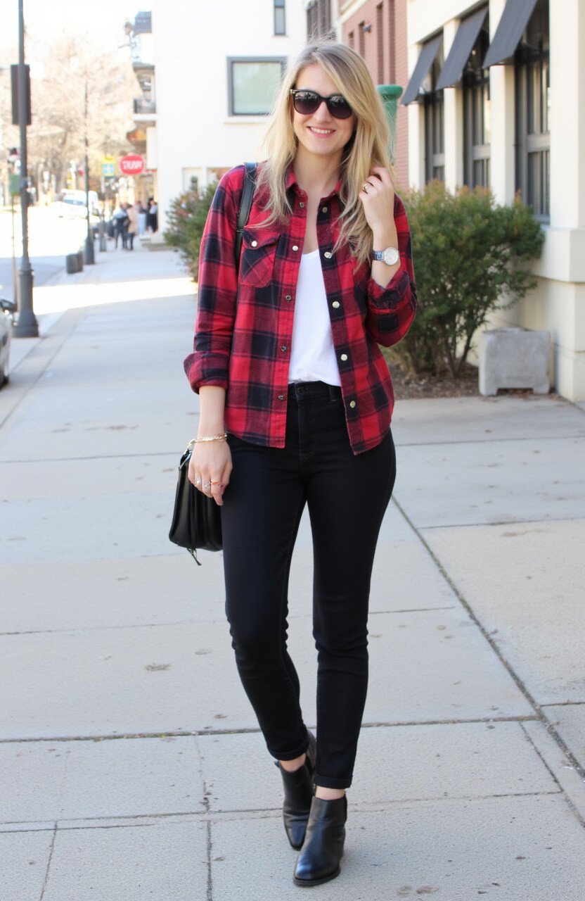 4. Flannel Shirt and Black Jeans