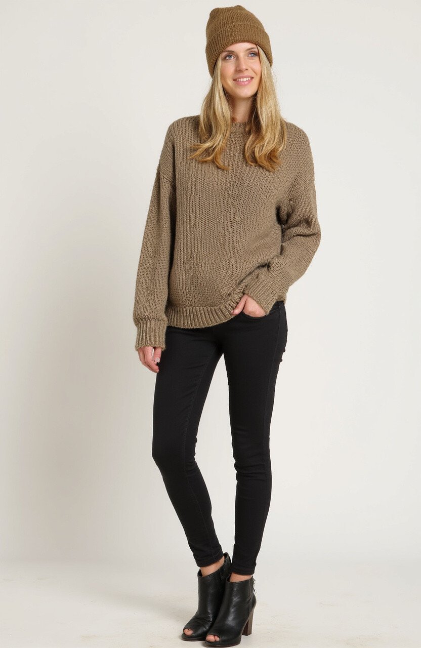 Choose earthy tones like olive or beige to stay on trend. Add a beanie for extra warmth. This outfit is great for lazy Sundays at home or casual outings. It’s budget-friendly, as you can find affordable options at most clothing stores.