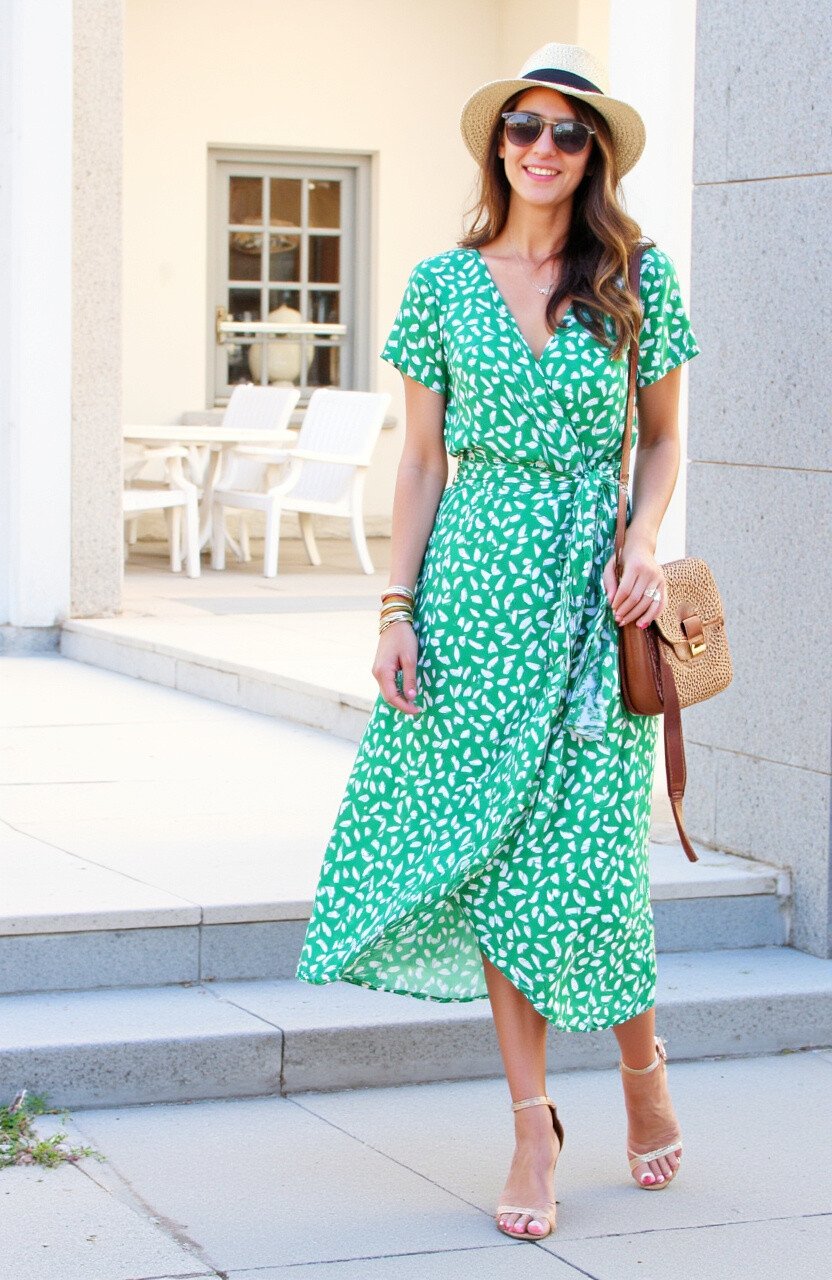 A wrap dress is both flattering and comfortable. Pair it with sandals for a breezy look. This outfit is great for warm weather and casual outings.