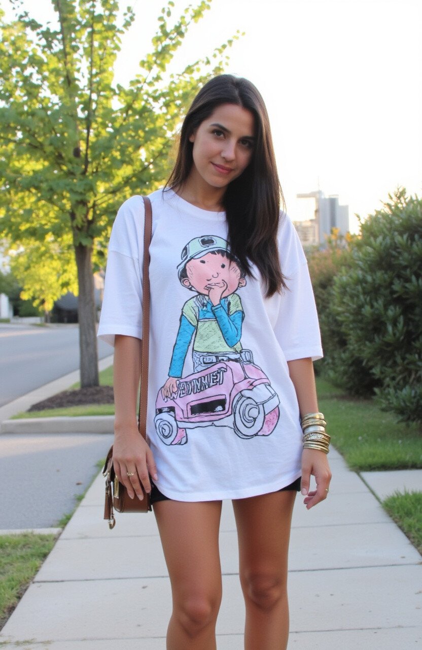 Oversized graphic tees are both fun and comfy. Pair them with biker shorts to balance the look. This outfit screams casual coolness.