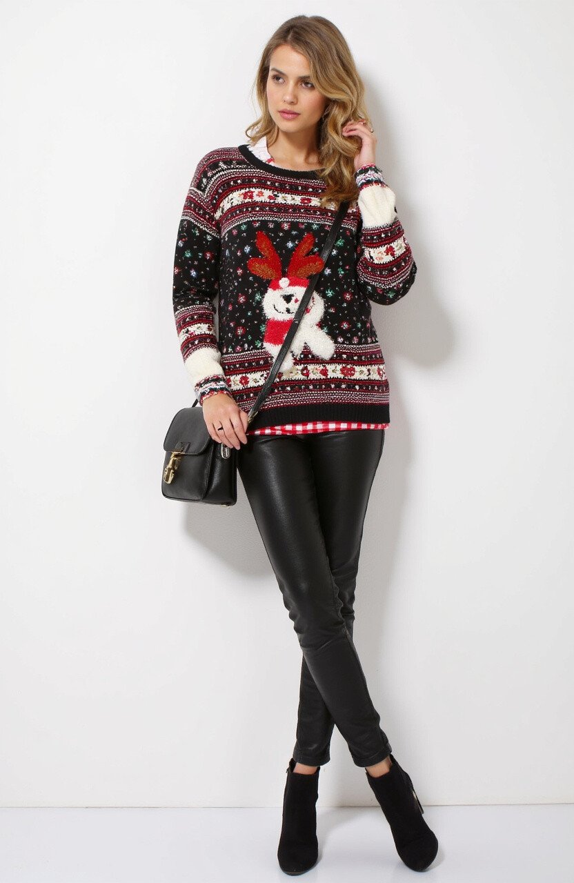 Combine edge and festivity with leather pants and a festive sweater. Leather pants add a modern twist to your holiday outfit, while a sweater keeps it cozy. Choose a sweater with a fun holiday pattern or embellishments.