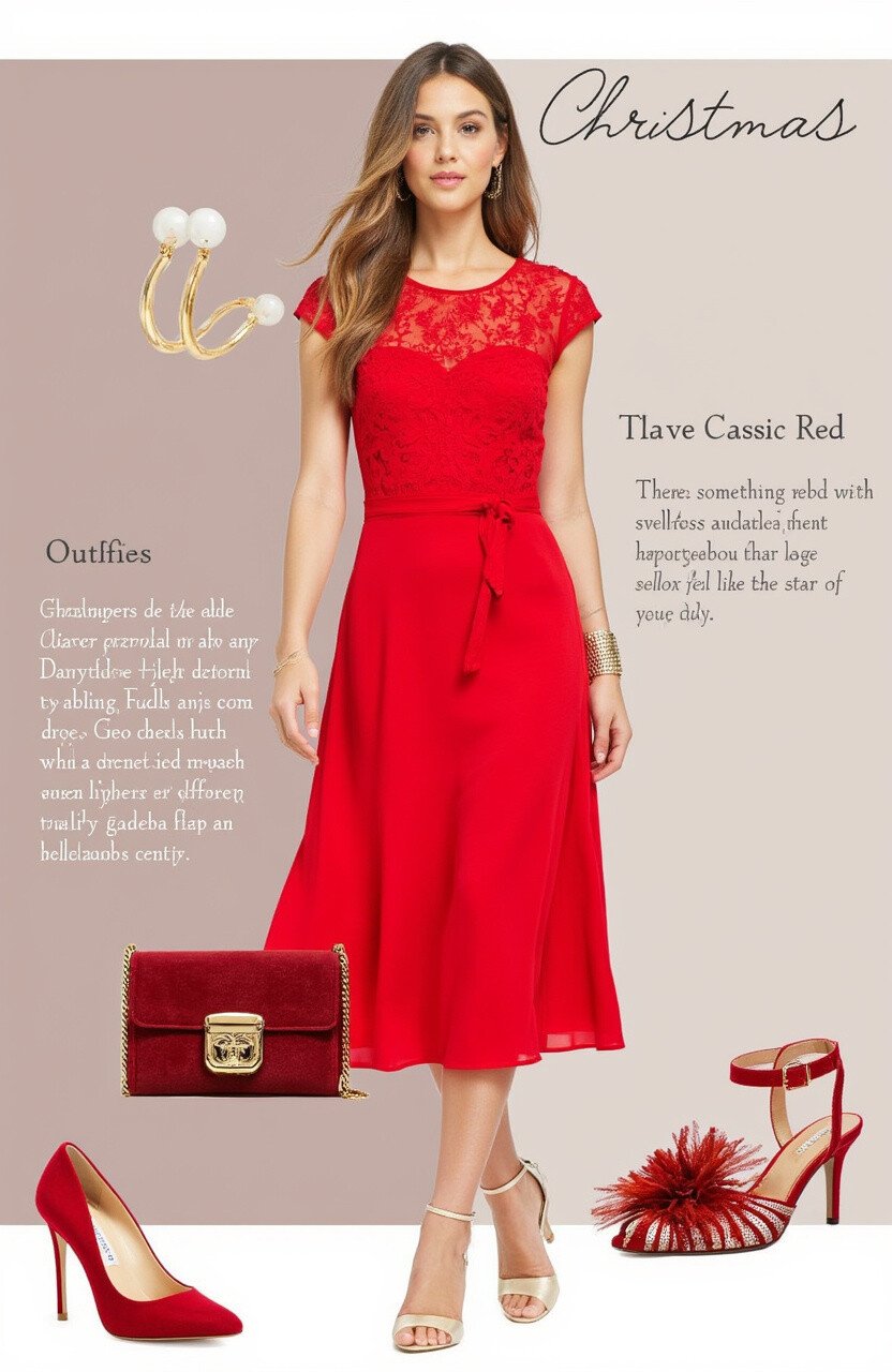 Pair it with gold or silver accessories to enhance its festive charm. The beauty of a red dress is its versatility; you can wear it year after year with different accessories to keep it fresh. This outfit is perfect for those who love tradition and want to embrace the holiday spirit fully.