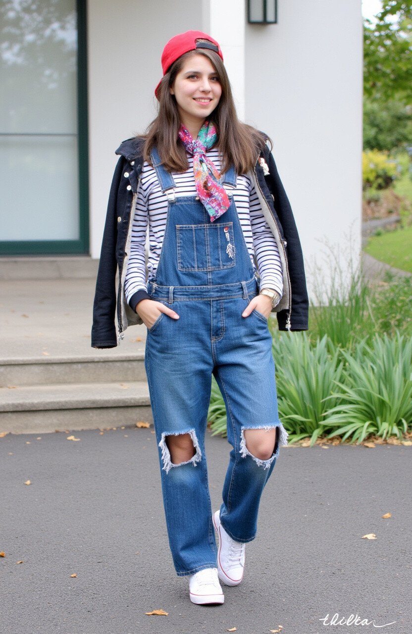 Bring a touch of nostalgia to your wardrobe with relaxed overalls and a striped tee. It’s a fun, youthful look that’s effortlessly cool.