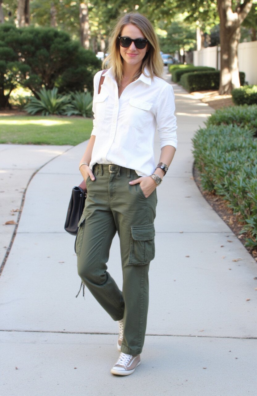 A button-up shirt paired with cargo pants is a nod to utility fashion. It’s practical yet stylish.