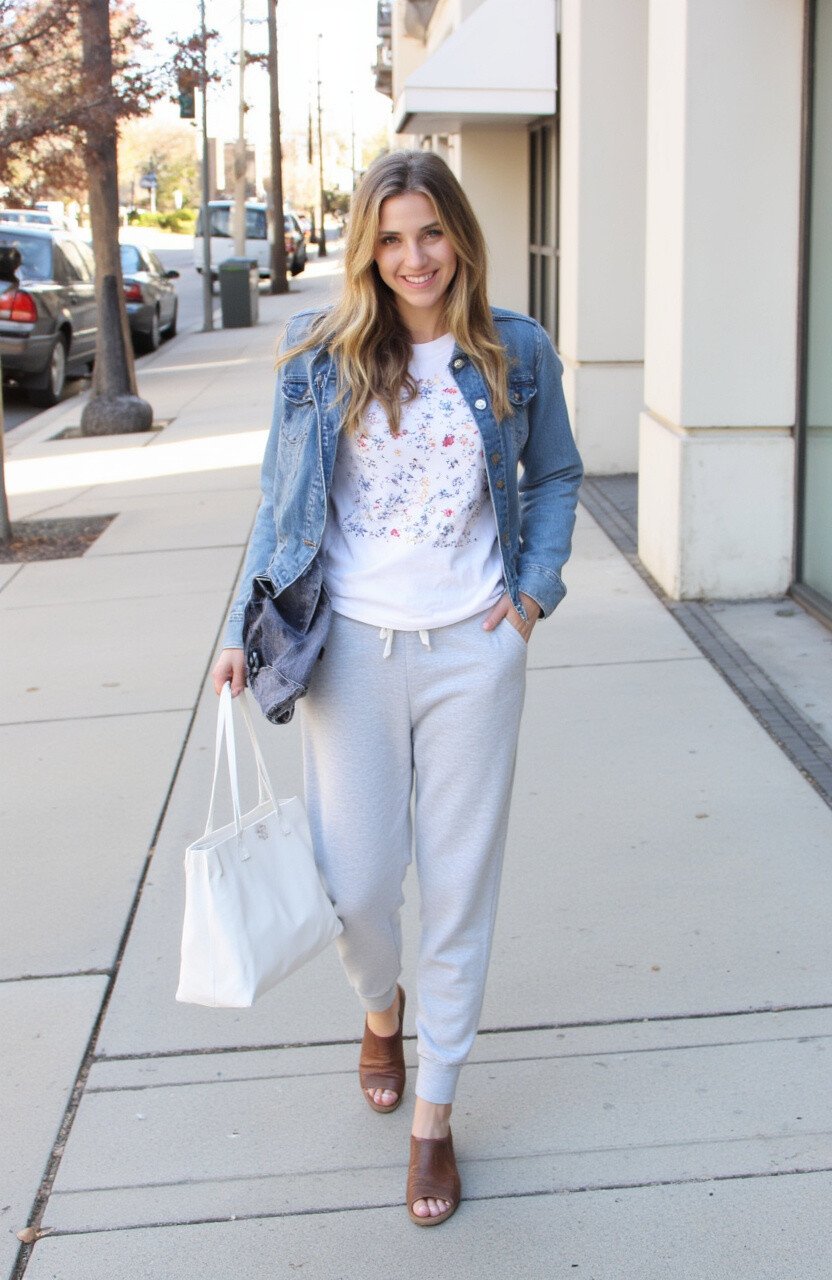 Choose a tee with a fun design or a quote you love. This look is great for lounging at home or a quick trip to the store. Add a denim jacket for a bit of edge.