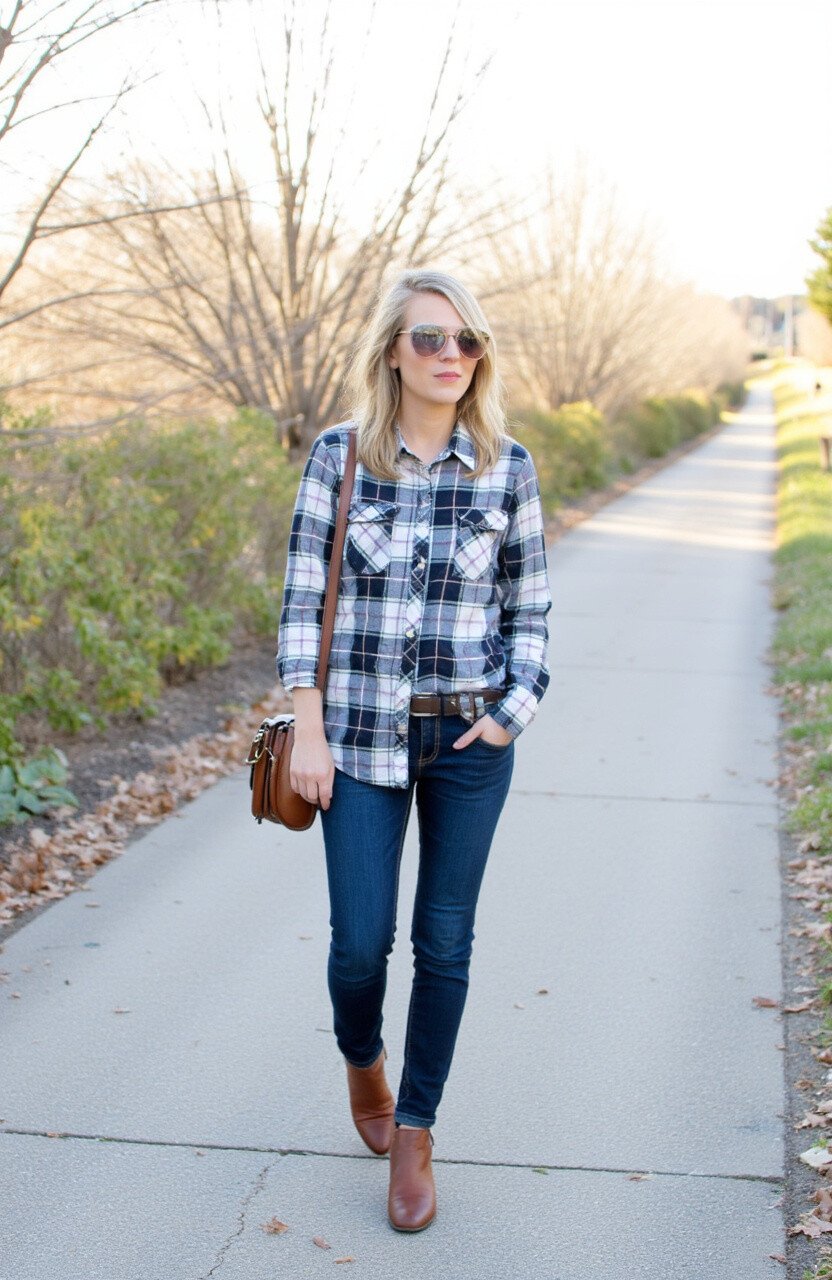 A plaid shirt brings a touch of the countryside to your everyday style. Pair it with skinny jeans for a flattering silhouette.