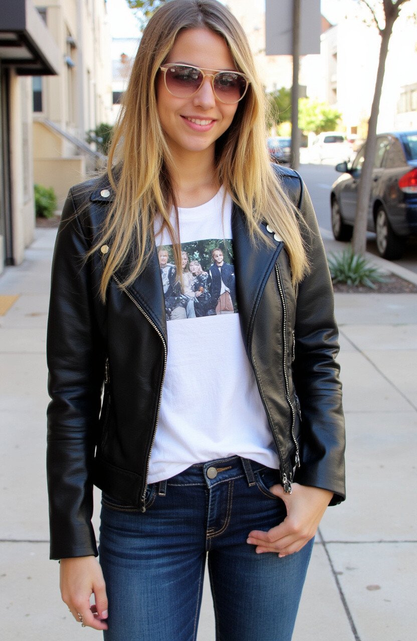 A leather jacket can instantly elevate any outfit. It adds an edgy, cool vibe that never goes out of style.