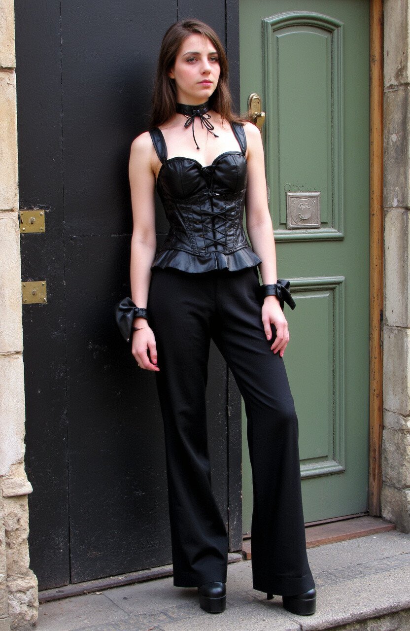 Try a corset top with high-waisted pants for a dramatic, gothic-inspired look. The corset accentuates your shape, while the pants offer comfort.