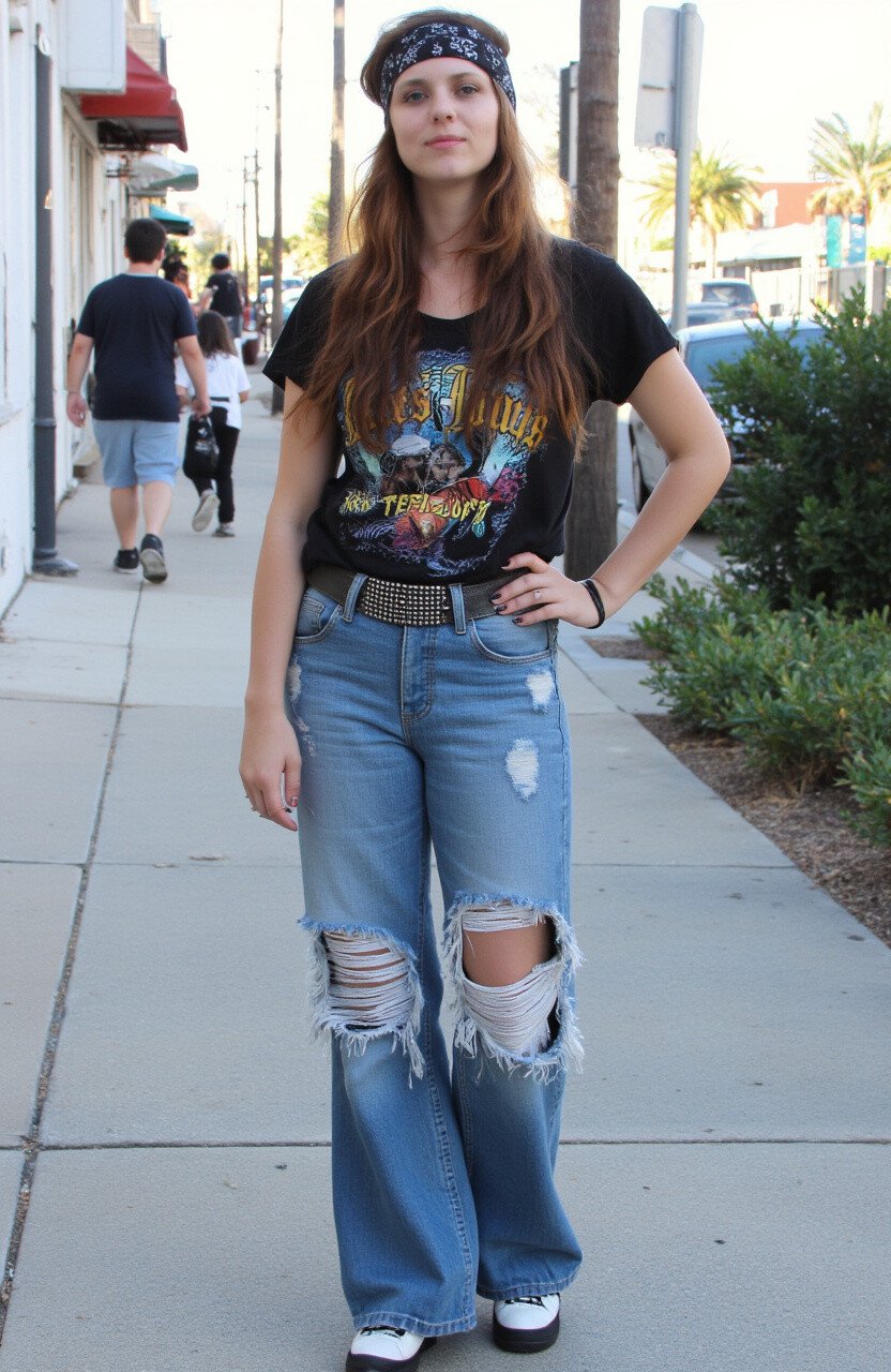 This outfit lets you showcase your favorite bands while maintaining a casual, rebellious vibe. Look for tees with bold graphics or vintage prints for extra flair.