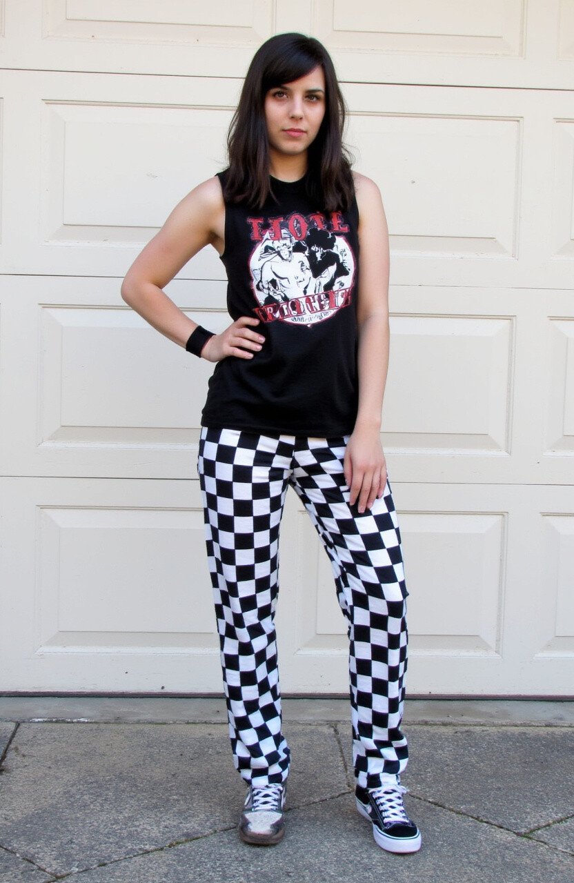 6. Graphic Tank and Checkerboard Pants