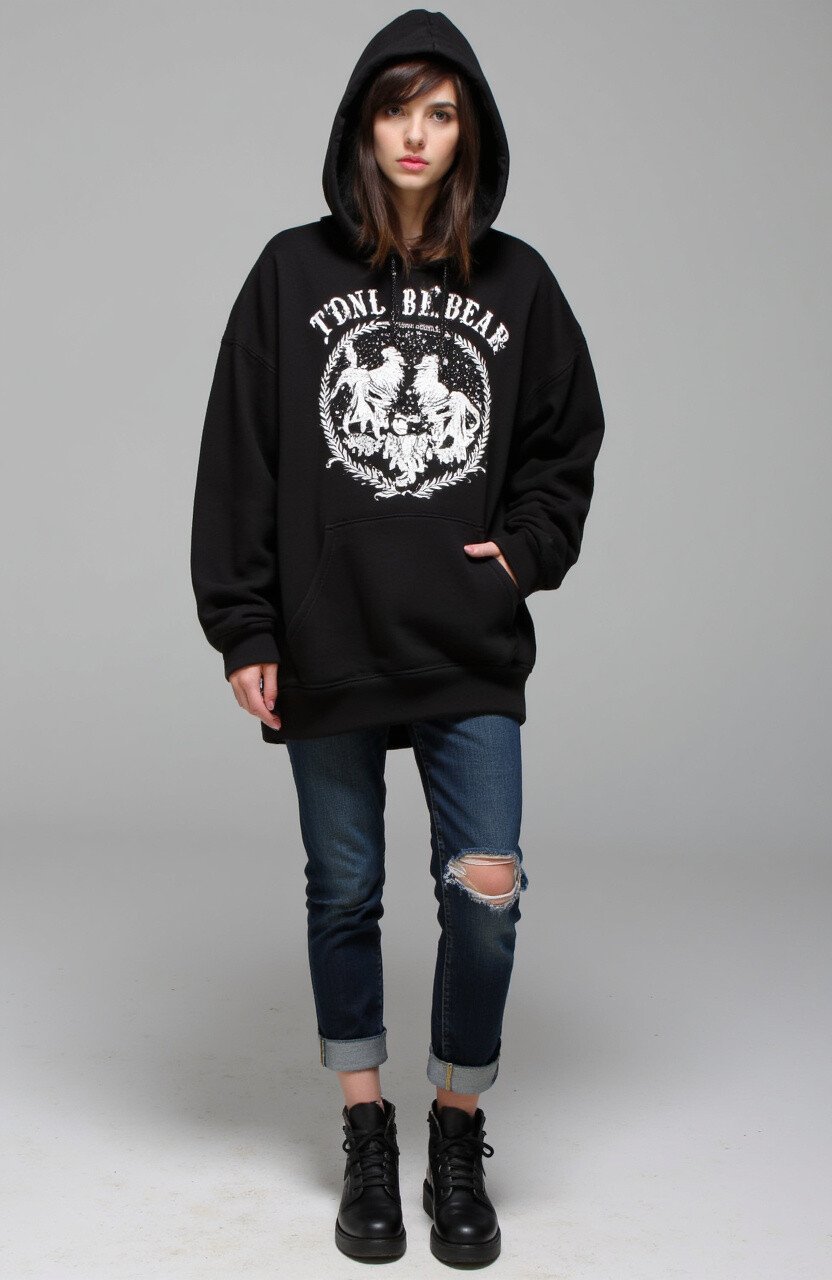 Skinny jeans balance the loose fit of the hoodie, creating a stylish silhouette. Choose hoodies with graphic designs for added impact.