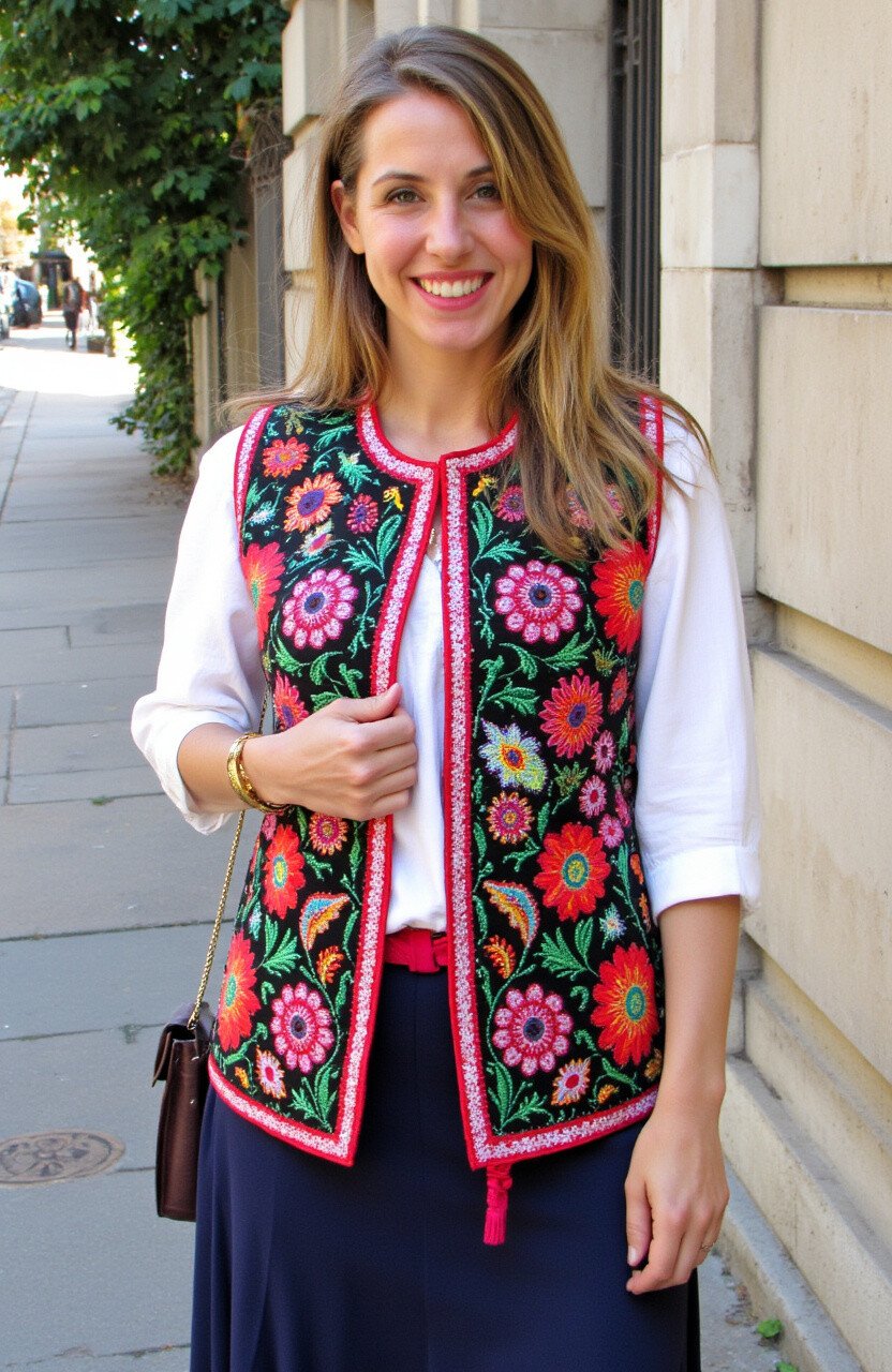 Add a touch of tradition with a Hungarian embroidered vest. It’s a piece that brings color and texture to your outfit.
