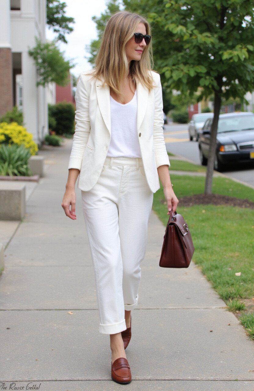 For a smart summer look, opt for linen trousers and a matching blazer. This Irish-inspired outfit is both sophisticated and relaxed.