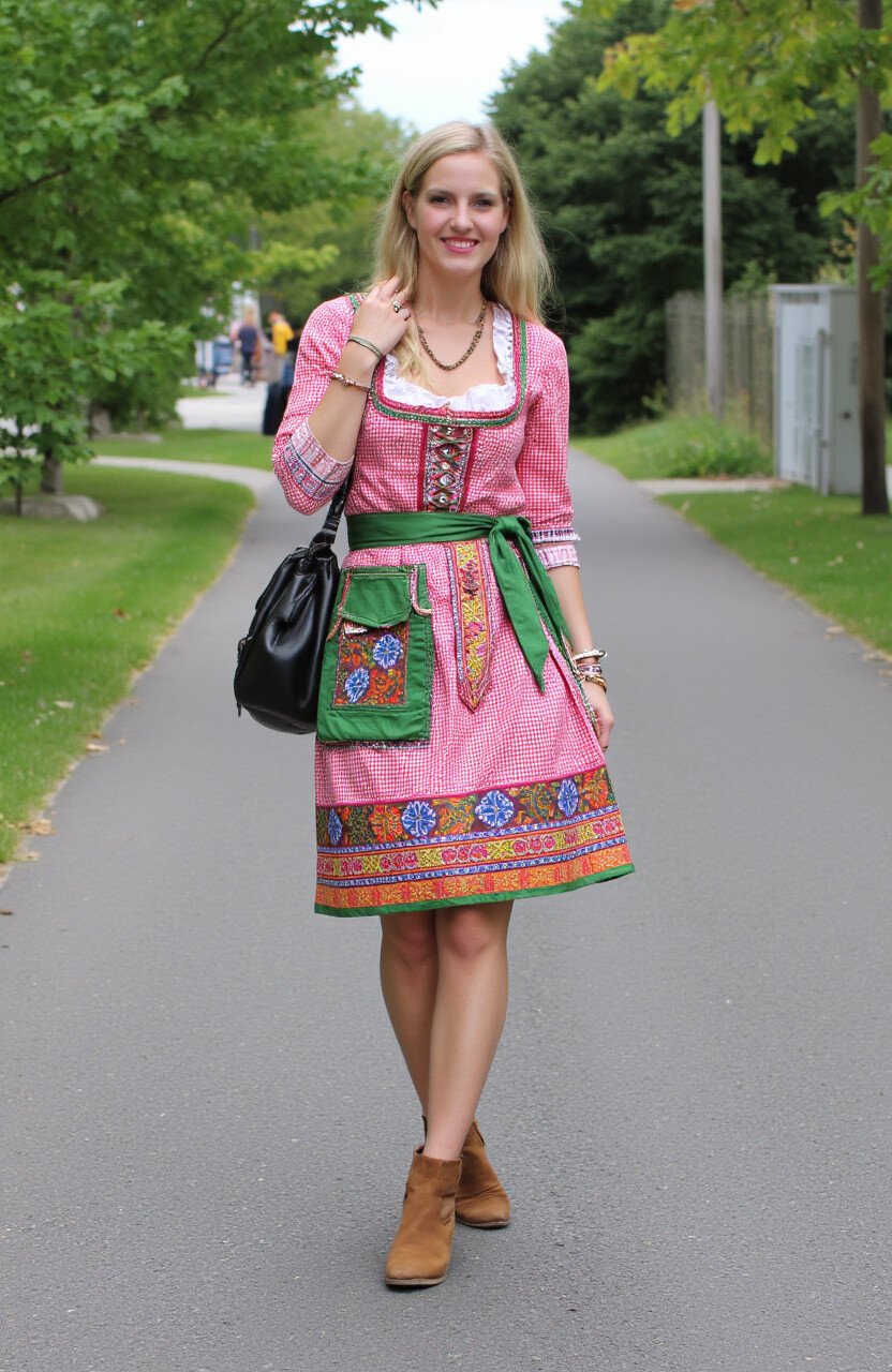 A modern take on the traditional dirndl, this skirt adds a touch of whimsy to your outfit. The colorful patterns are both fun and fashionable.
