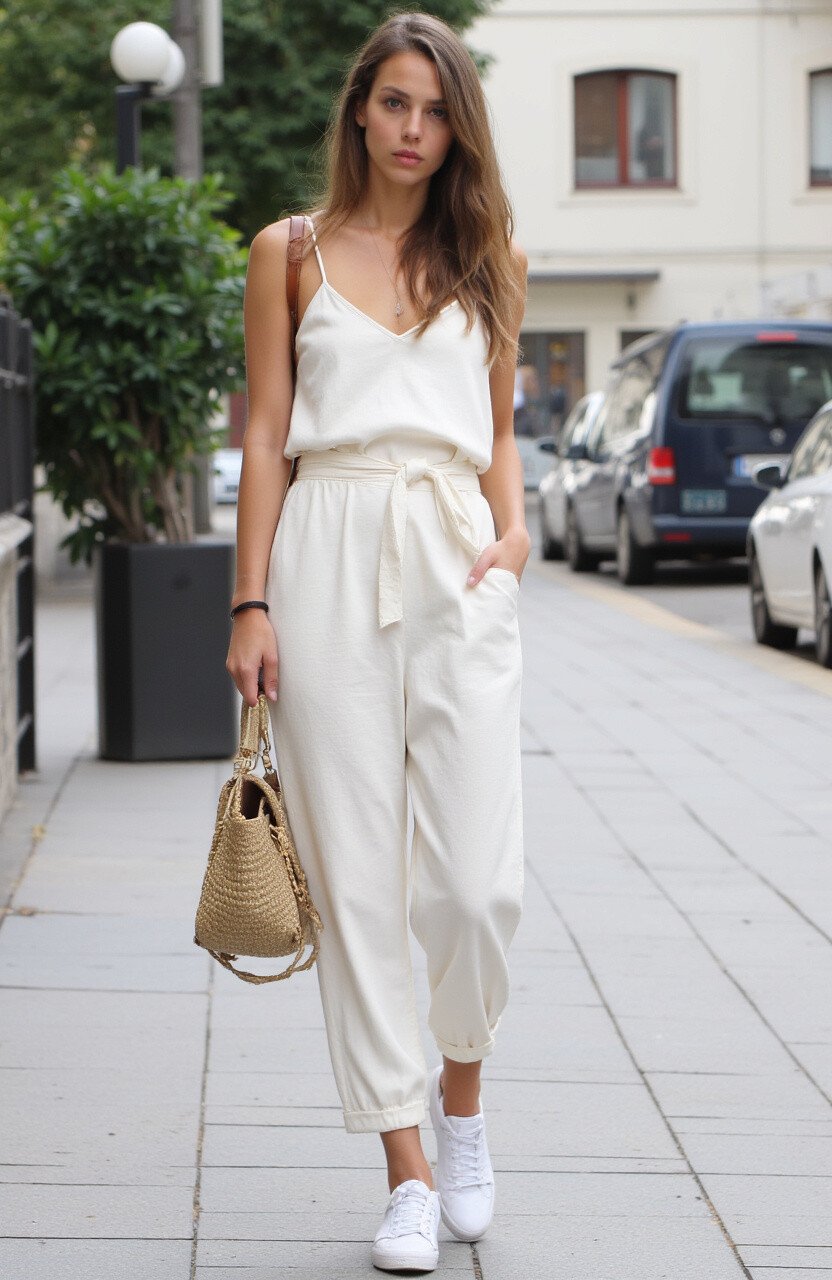This outfit is both breathable and fashionable, ideal for a hot summer day. Linen’s texture provides a touch of luxury. Add some leather sandals, and you’re ready to explore ancient ruins.