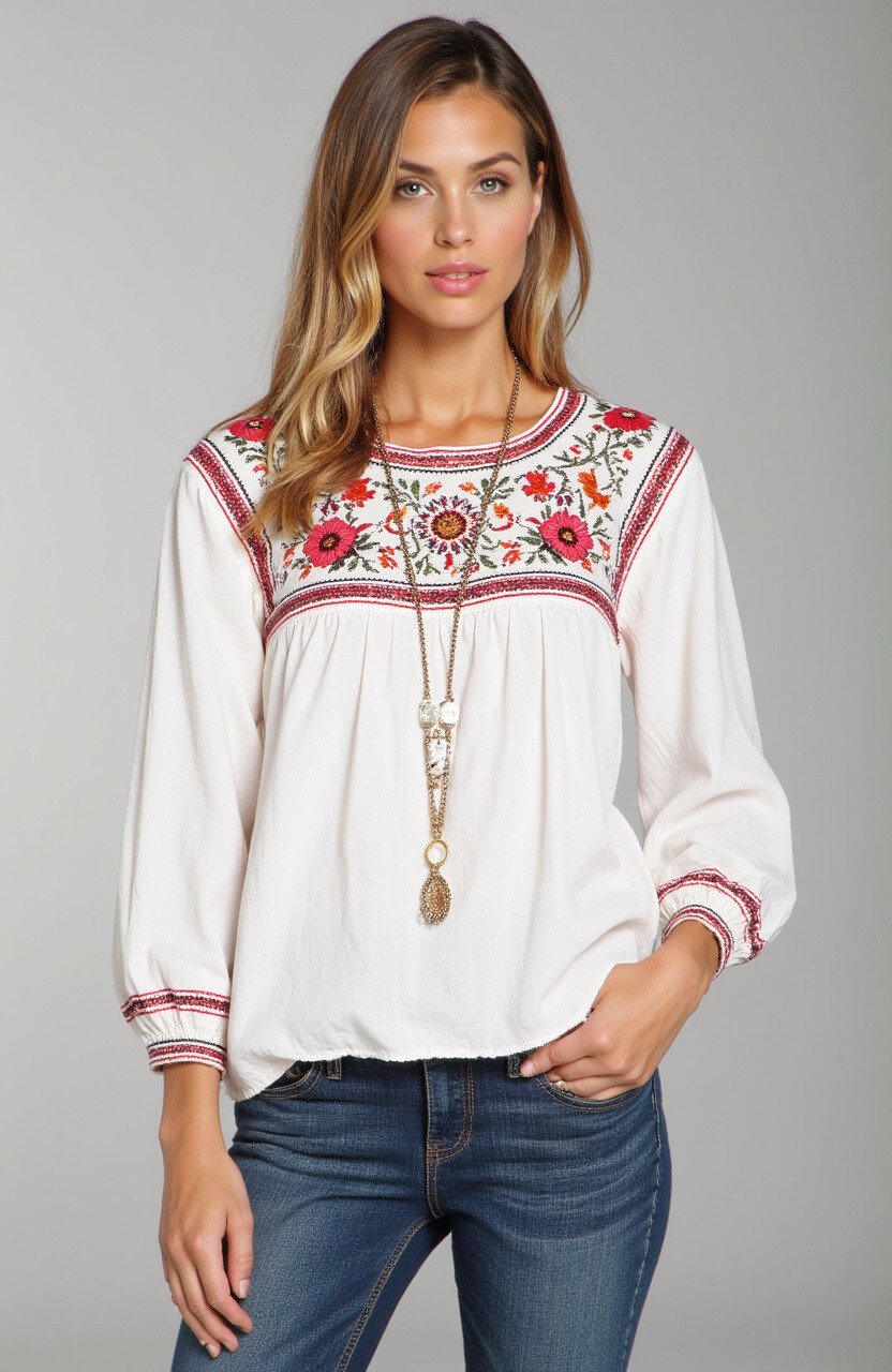 Embrace a relaxed summer vibe with a Polish peasant blouse. The loose fit and embroidered details make it a favorite.