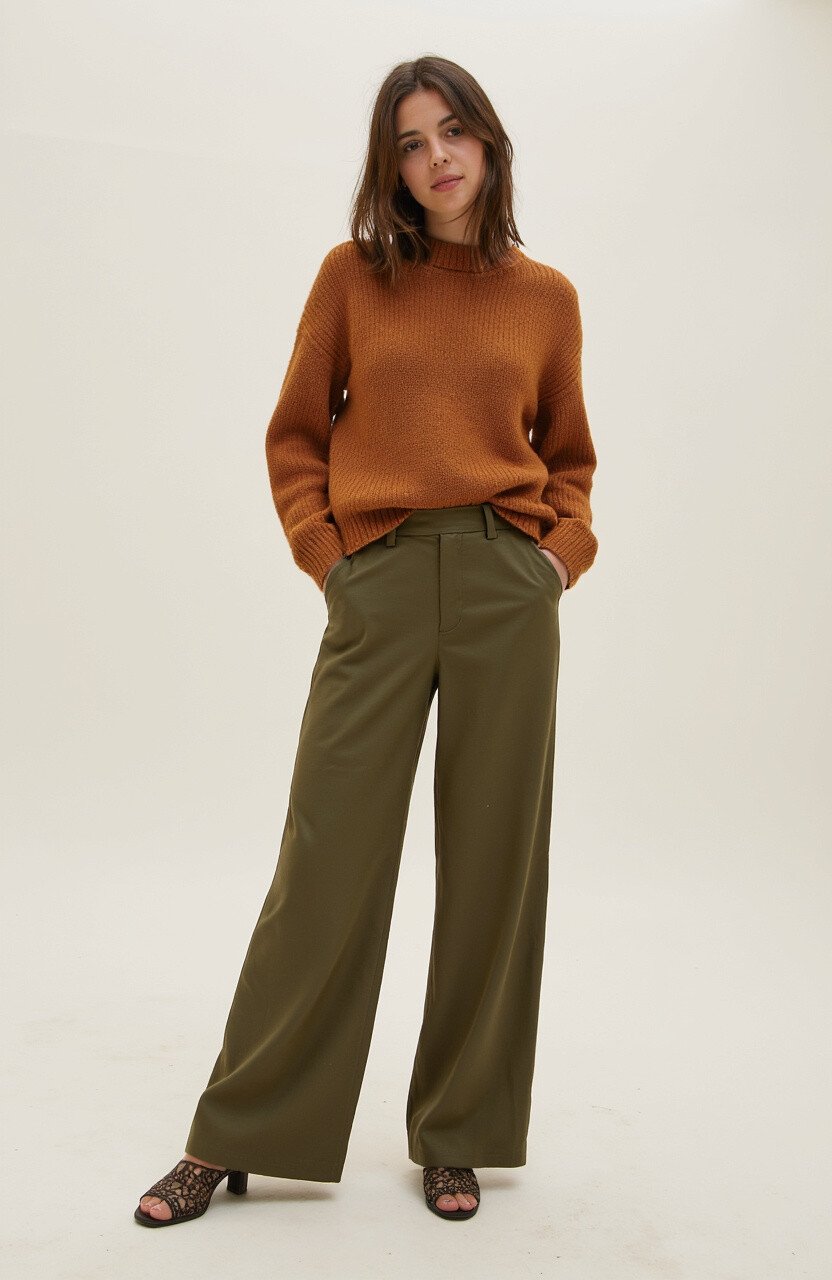 Earthy tones like olive or rust are on-trend. These trousers are available from $40 to $90.