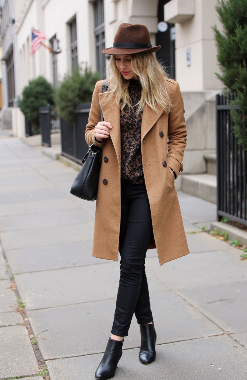 A wool fedora adds instant style. It’s a perfect accessory to elevate your fall wardrobe. The hat’s structure adds a sophisticated touch.