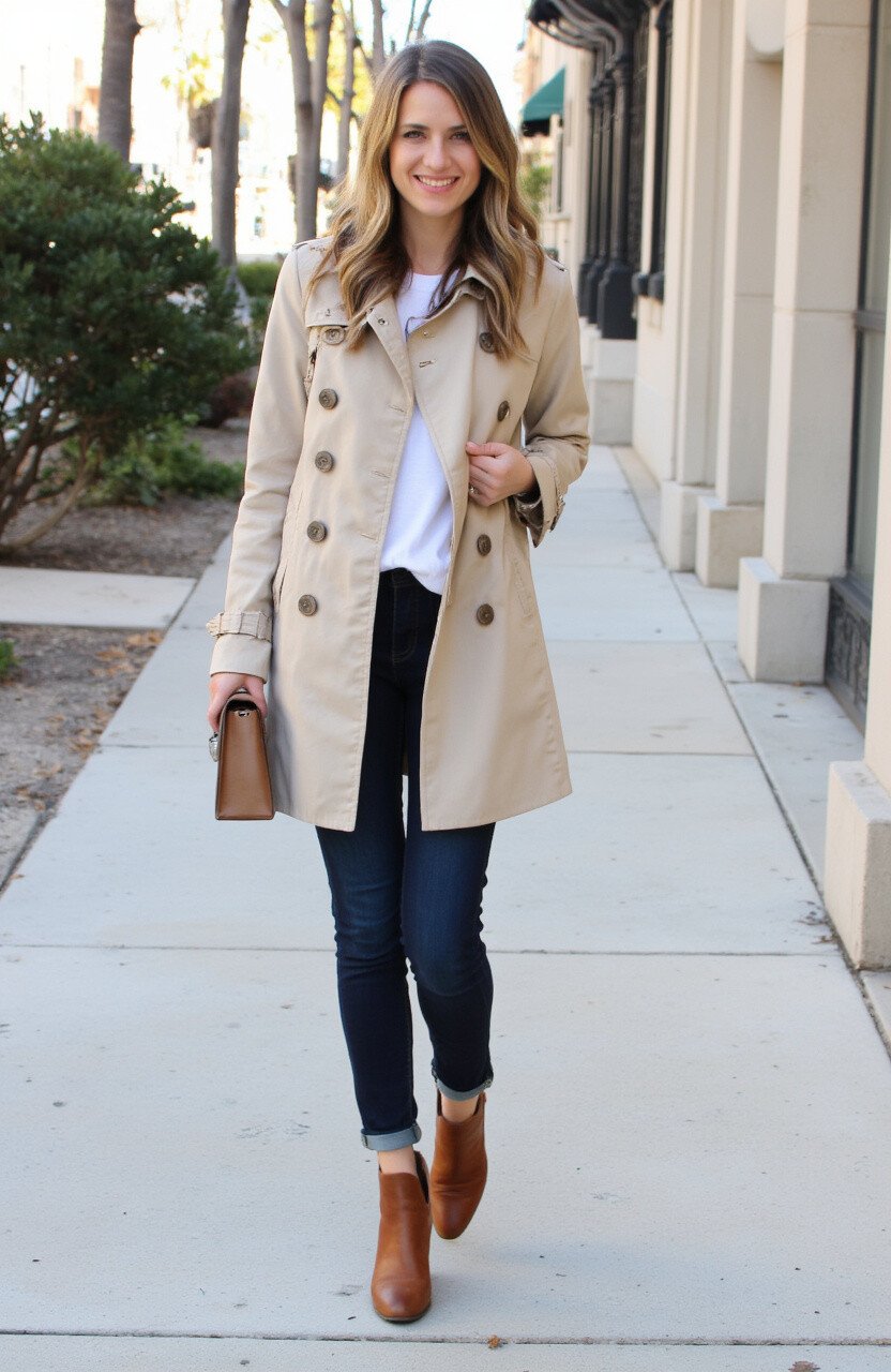 A trench coat is timeless. It’s perfect for those unpredictable fall showers. The cinched waist flatters every silhouette.