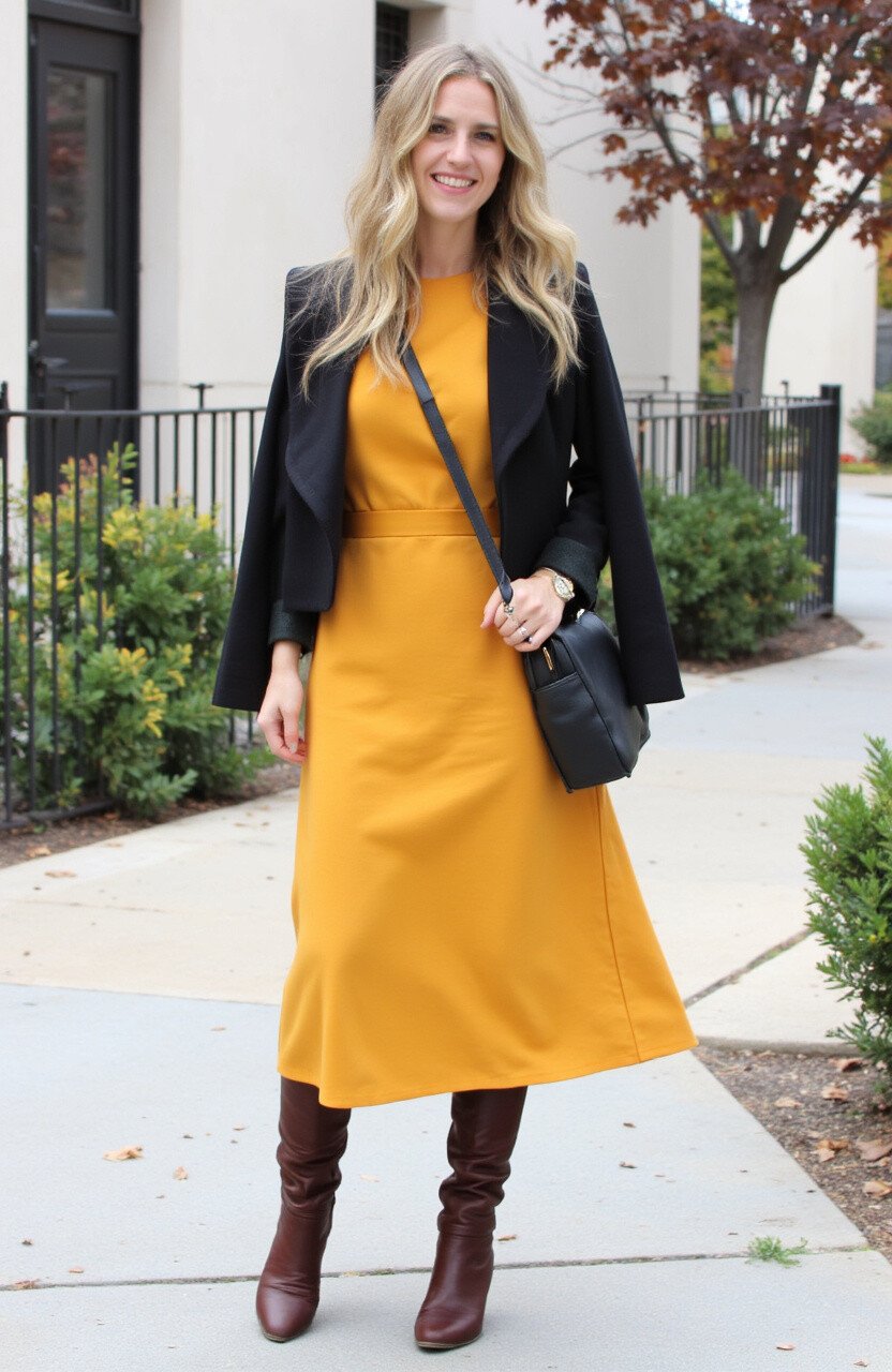 Midi dresses offer elegance and ease. Their length is perfect for transitioning between seasons. Choose autumnal shades like mustard or maroon.