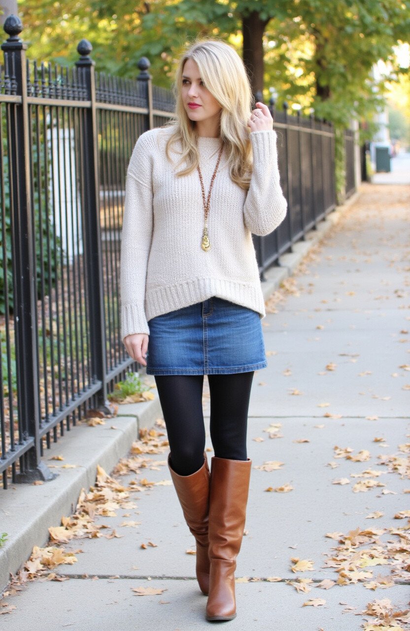 As the weather cools down, swap your summer tops for a cozy sweater. Pair it with your jean skirt and some cute boots for an autumn-appropriate outfit.