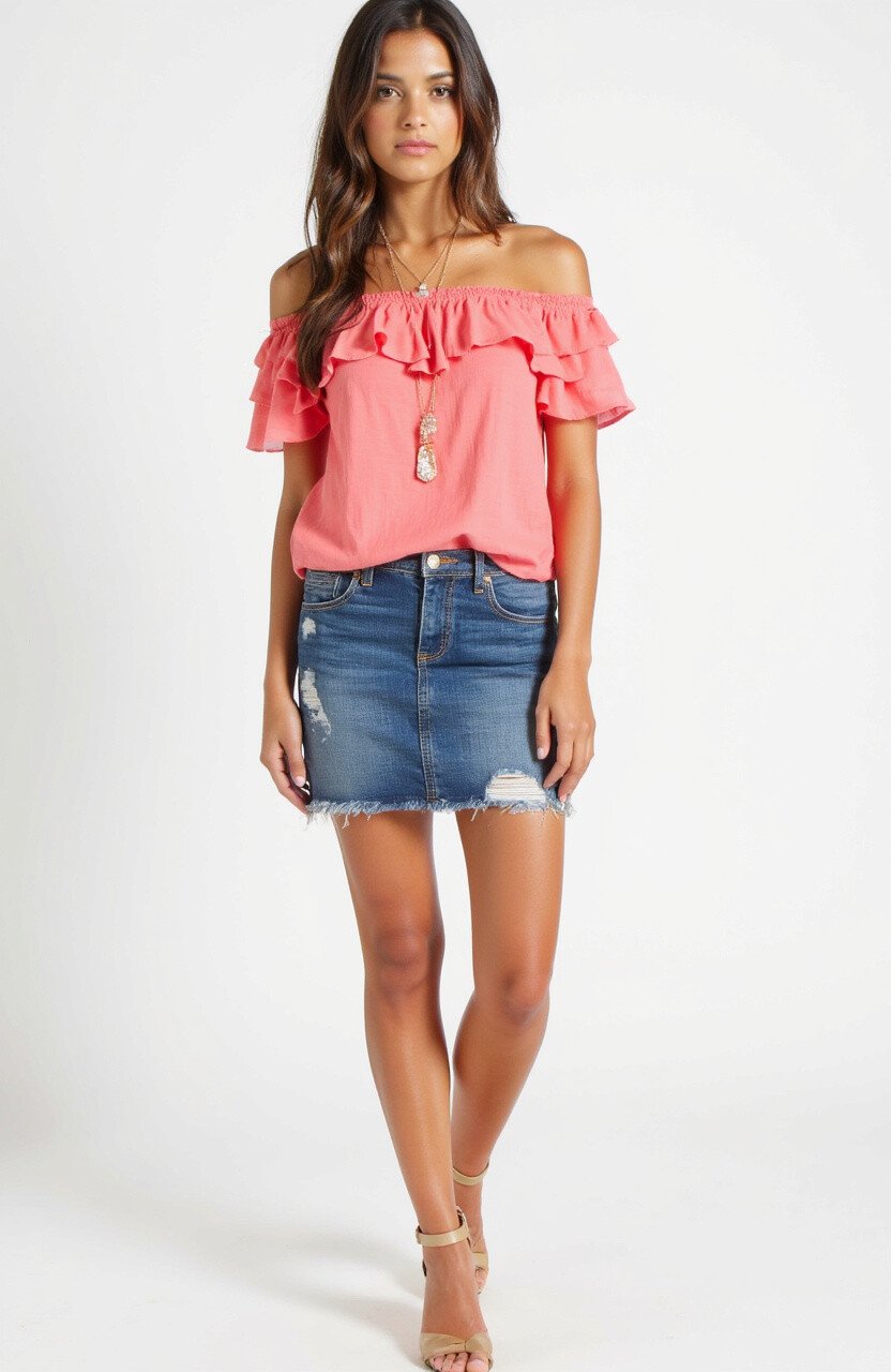 Embrace your romantic side with an off-shoulder top and jean skirt. This outfit is perfect for date nights or any occasion where you want to feel feminine and flirty.
