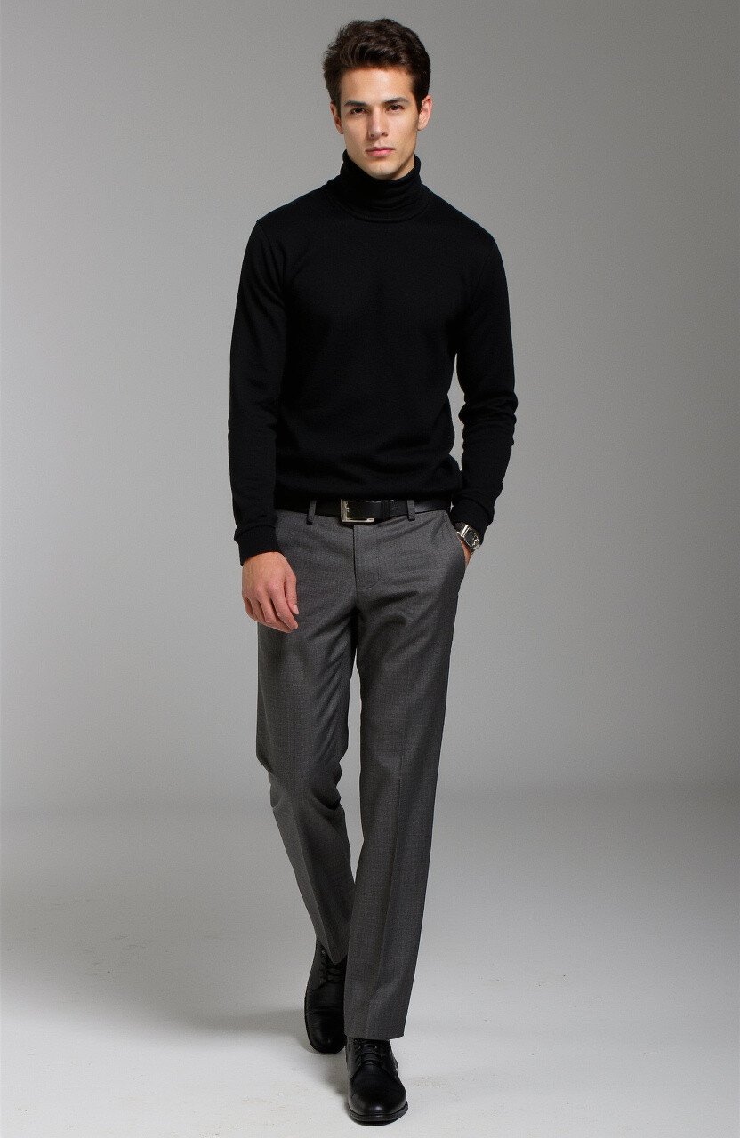Achieve sleek sophistication with a monochrome outfit. Choose a single color palette, like shades of gray, and vary the textures. A turtleneck and tailored trousers work wonders.