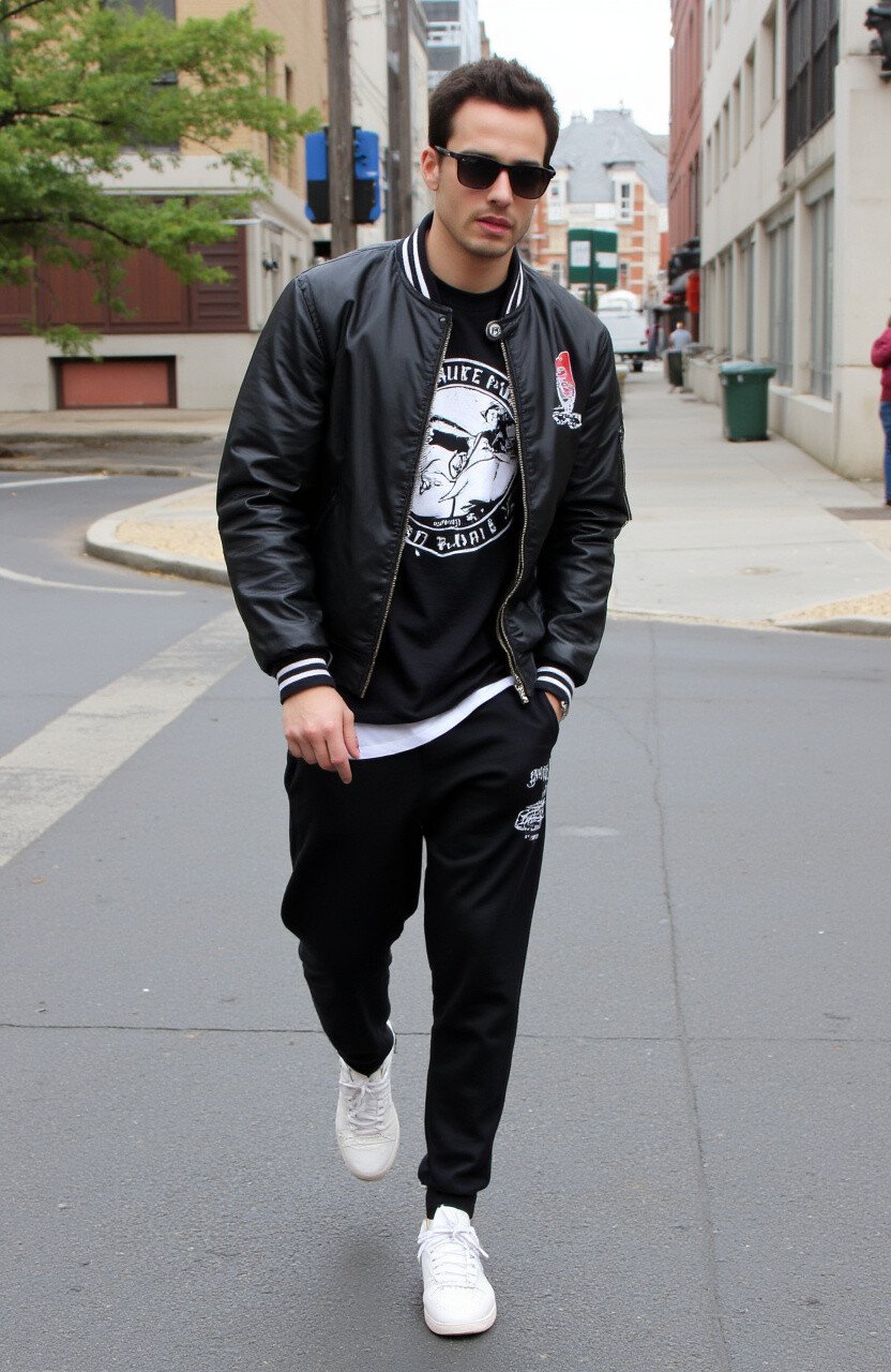 Channel your inner urbanite with street style. Combine joggers with a graphic tee and a bomber jacket for a look that’s both comfortable and edgy. Sneakers are a must to complete this ensemble.