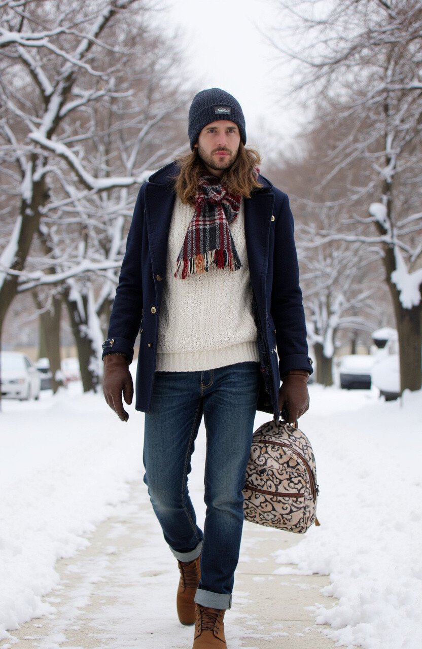 This look is about combining practicality with style. It’s perfect for those who want to look good while staying warm. Personalize with a cozy beanie or a stylish backpack.