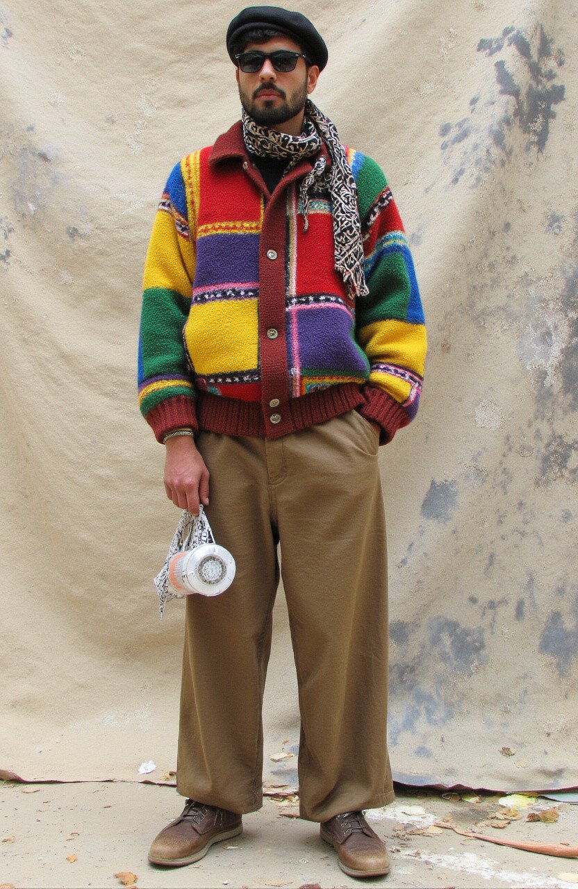 Unleash your creativity with an artist-inspired outfit. Think loose-fitted trousers paired with a colorful, oversized sweater. A beret or a scarf can add an artistic touch.