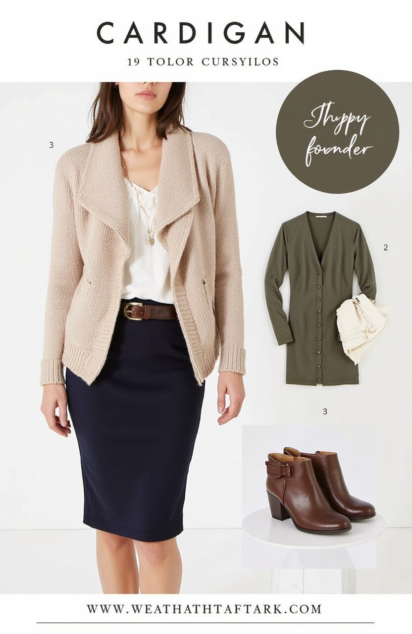 Choose a cardigan in a soft hue and pair it with a dark-colored skirt for contrast. Layer with a simple blouse or t-shirt for a complete look. Add a belt to define your waist.