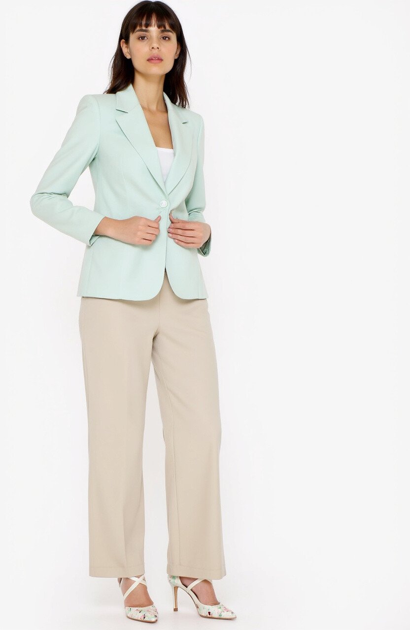 Play with colors by choosing a pastel blazer for a soft, approachable look. Pair it with neutral pants to balance the outfit. Look for blazers with unique buttons or lapels for an added touch of style.
