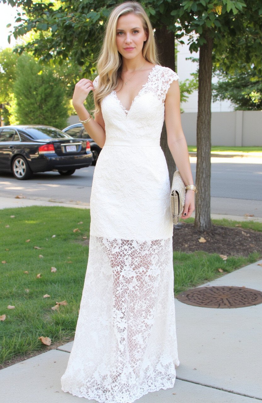 Lace dresses pair well with simple accessories, allowing the fabric’s beauty to shine. Opt for nude or metallic shoes to keep the focus on the dress. A small clutch and understated jewelry complete the look.