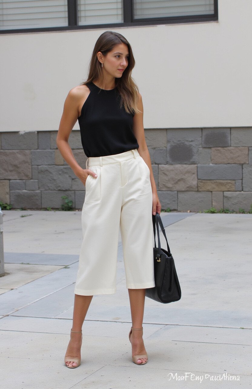 Culottes are both fashionable and functional, providing comfort while maintaining a chic appearance. Paired with a fitted top, this outfit is perfect for a modern office.