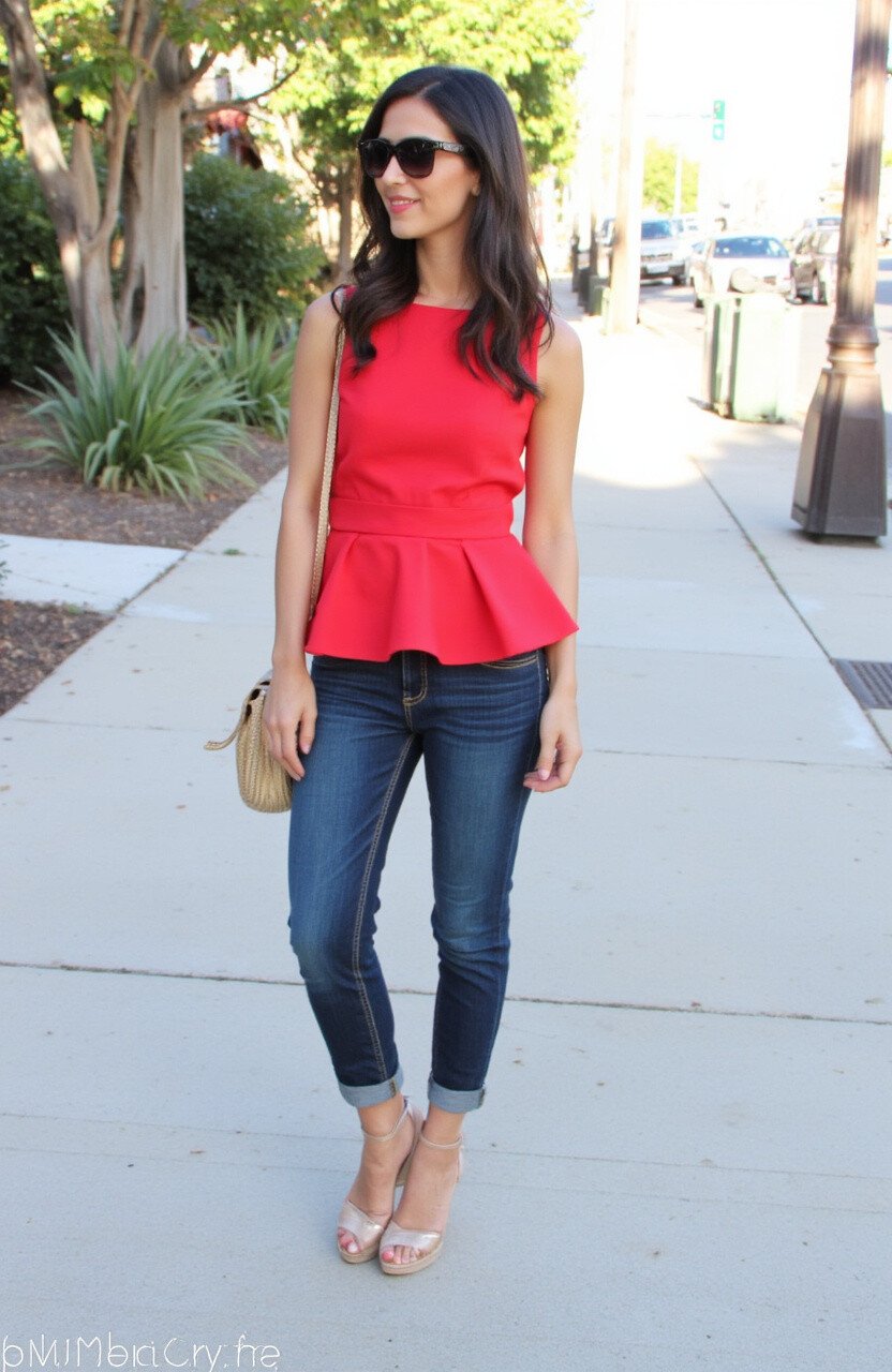Cropped jeans and a peplum top create a flirty and fun look. This outfit is perfect for brunch or a day out shopping.