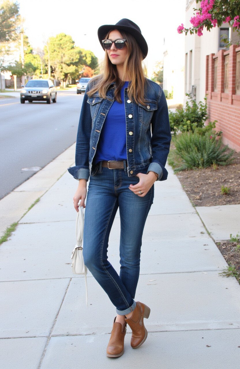 Make sure the denim tones are different to create contrast. You can add a pop of color with a bright t-shirt or accessories. This outfit is perfect for a casual yet trendy look.