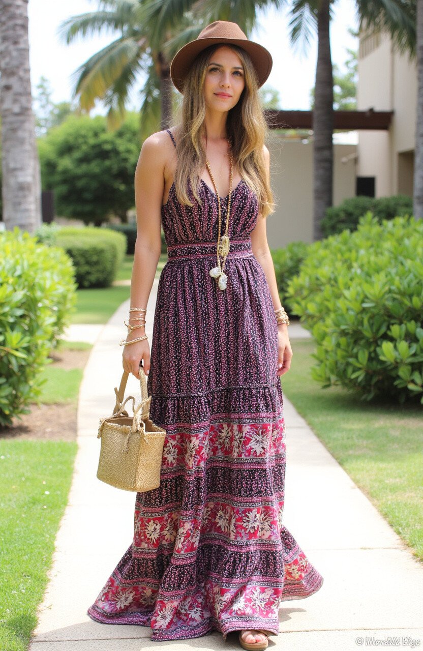 Embrace the free spirit of the ’70s with a boho maxi dress. These dresses are known for their flowing silhouettes and vibrant patterns.