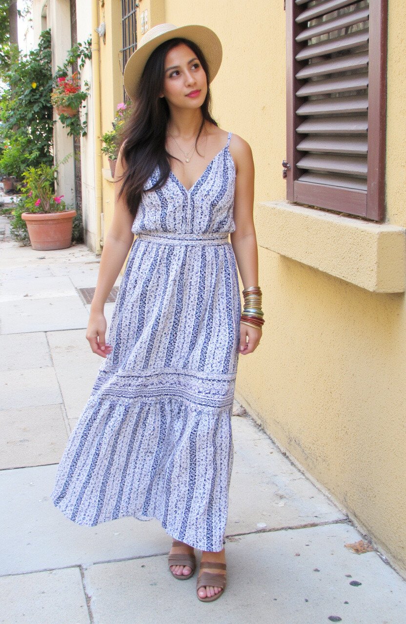 A boho maxi dress is perfect for a laid-back, whimsical vibe. It’s flowy, comfortable, and effortlessly stylish.