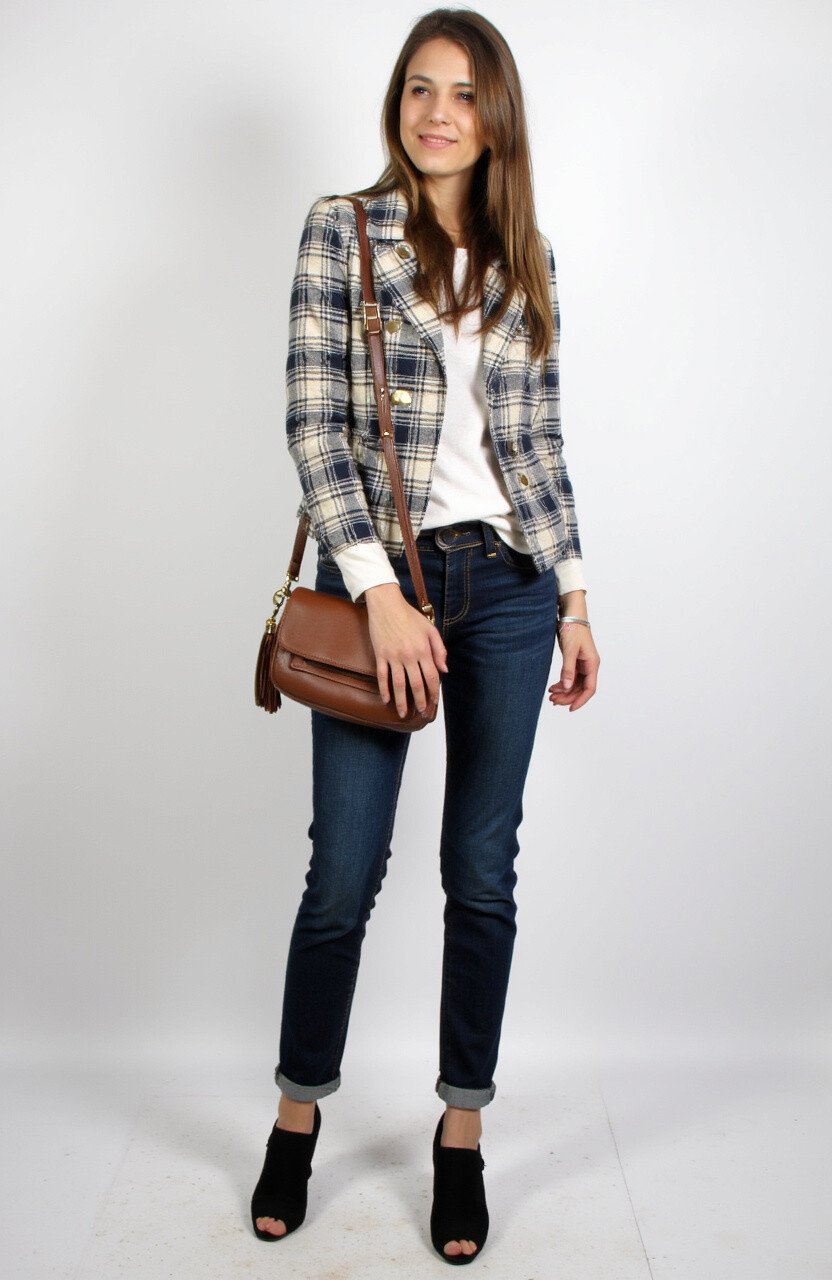 Experiment with colors and patterns to express your personality. A plaid blazer can add a fun twist to your style.