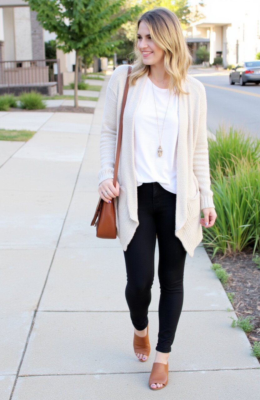 Opt for cardigans in neutral colors for versatility. Layer with a simple tee or tank top.