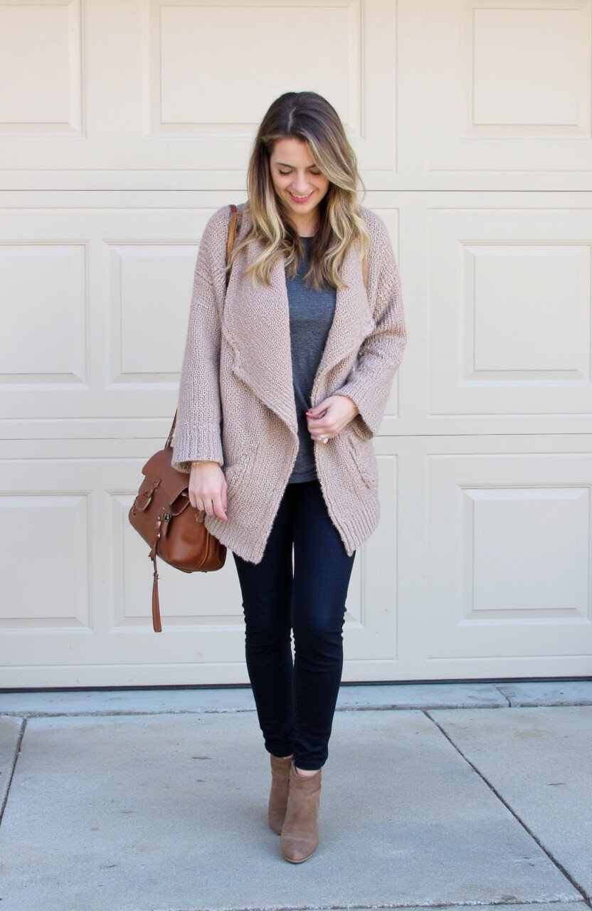 An oversized cardigan is like a fashionable blanket you can wear. It’s comfortable and perfect for layering.