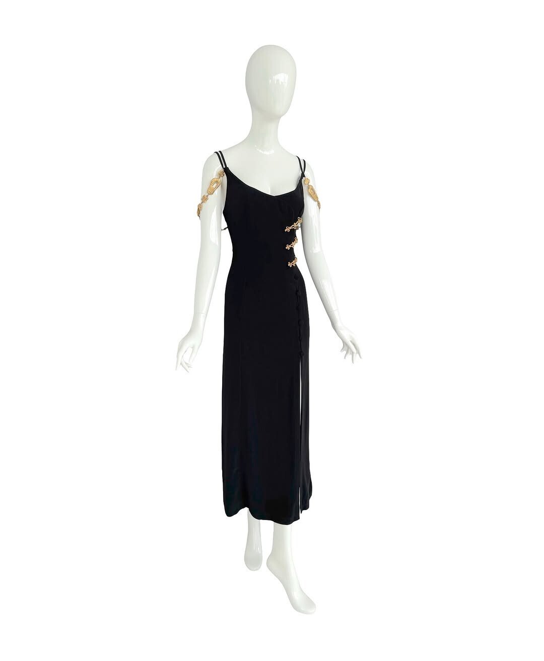Elegant Black Slip Dress with Golden Details